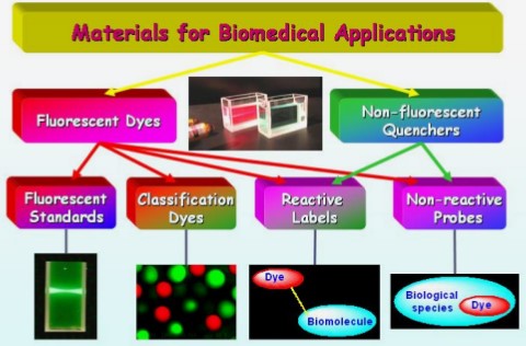 Розроблені матеріали використовуються у медико-біологічних і фармацевтичних дослідженнях, заснованих на вимірюванні інтенсивності флуоресценції, поляризації, часу життя або флуоресцентного резонансного переносу енергії (FRET). Вони мають певні переваги над комерційними барвниками серій Cy, Alexa, DyLight та ATTO і включають: