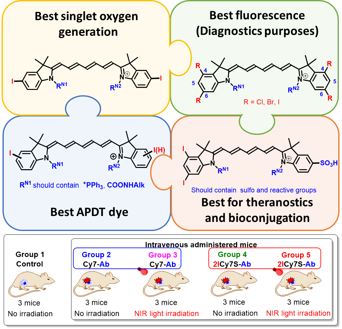 Ці дослідження зосереджено на вирішенні ключових проблем розроблення та застосуванні галогеновмісних поліметинових барвників з метою створення ефективних фотосенсибілізаторів для протиракової та протимікробної фотодинамічної терапії (ФДТ).