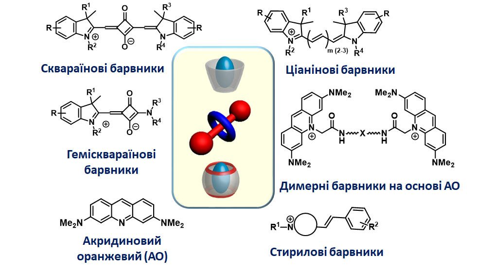 Окрім систем на основі сквараїну, створюються та досліджуються супрамолекулярні архітектури на основі гемісквараїнових, ціанінових, трифенілпіразолінових та стирилових барвників, а також димерних похідних акридинового оранжевого. Ці матеріали використовуються для проведення медико-біологічних досліджень.