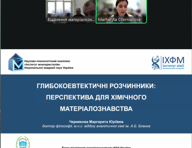 Виступ докторки філософії Маргарити Чернякової на засіданні Бюро Відділення матеріалознавства НАН України